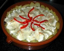 muzzarela e coloque as batatas por cima. Deite as natas, polvilhe