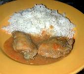 o molho por cima do frango e come-se com arroz branco.