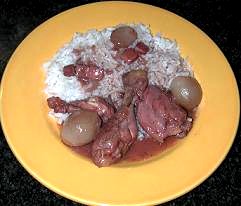 cima do frango e misture rapidamente. Coloque o vinho e as cebolas