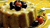 desenforme o pudim e guarneça com azeitona e os tomates pequenos.