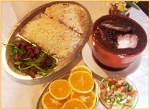 Numa panela grande, leve o feijão a cozinhar, juntamente com as carnes pré-cozidas, o paio (sem pele), duas laranjas abertas ao meio e com casca, salsinha, cebolinha e louro.