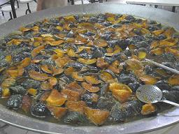 Corte a moranga em fatias com a casca. Tire as sementes. Derreta o açúcar em forma de caramelo. Acrescente a moranga ao caramelo com um pouco de água. Deixe cozinhar. Sirva ainda quente.